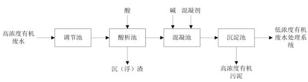4) 酸析后的高濃度有機廢水可采用生化處理,也可根據(jù)情況采用化學氧化處理;