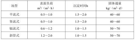 5)沉淀池的設計參數(shù)應根據(jù)廢水處理試驗數(shù)據(jù)或參照類似廢水處理的沉淀池運行數(shù)據(jù)確定;當沒有試驗條件和缺乏有關資料時,設計參數(shù)可參考表 2確定;