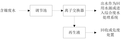 4)含鎳廢水經(jīng)離子交換將鎳處理達標后,可作為回用水源或進入綜合廢水處理系統(tǒng);